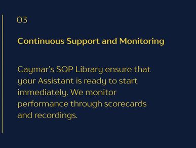Caymar does the heavy lifting: we start with the top 1% of global applicants. Every Virtual Assistant is supported by a dedicated Personal Manager and a network of peers, ensuring they always have the resources and answers they need.